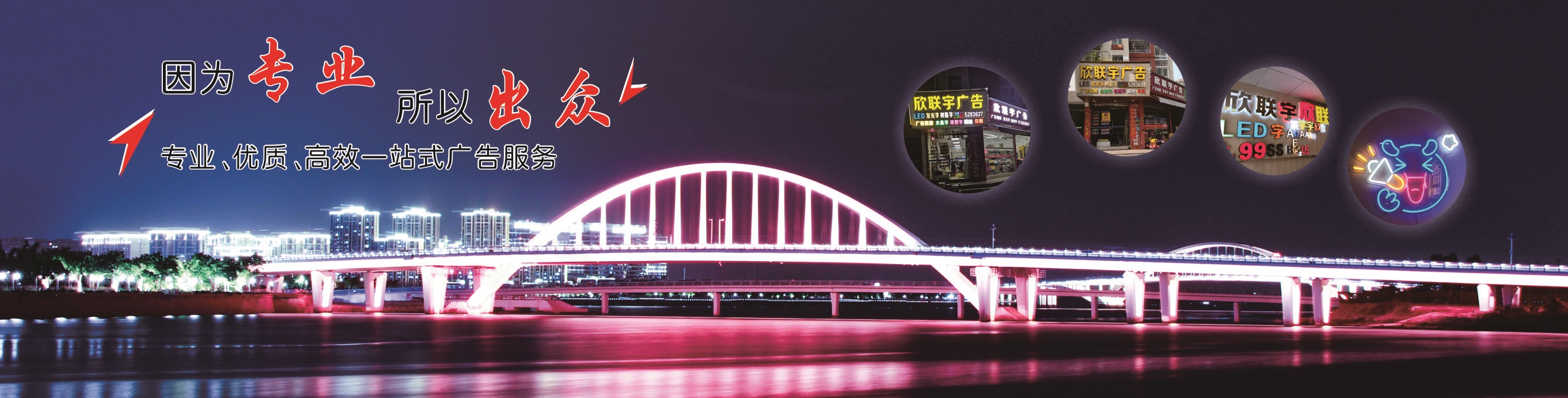 廈門欣聯宇廣告有限公司是集廣告設計、廣告制作、安裝一站式服務的廣告公司。專注戶內外廣告制作:戶外廣告制作,樓頂大字廣告制作,墻體廣告制作,廣告燈箱制作,標識標牌,企業形象墻制作,文化墻,廣告牌制作,led發光字,led顯示屏,廣告噴繪等等。 廈門欣聯宇廣告有限公司,是一家擁有良好行業口碑的平面廣告機構。我們的宗旨是“凝聚現代智慧、創作廣告精品”。我們用我們的專業為客戶打造優質的廣告產品。客戶的滿意就是我們的動力。 我們擁有多年的廣告制作經驗,也在廣大客戶中樹立了良好的口碑。“想客戶所未想,急客戶所未急”是我們的服務理念。